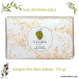 Viridis Dükkan Saf Zeytinyağlı Isırgan Otlu Katı Sabun, zeytinyağının besleyici etkisiyle birleşerek cildi arındırır, canlandırır ve doğal bir tazelik hissi sunar.